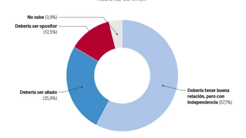 En el caso del cómo debería ser ese vínculo, el 25,9% se inclinó para que la provincia sea una de las aliadas de la gestión libertaria, mientras que el 57,7% evaluó que debería tener buena relación, “pero manteniendo independencia”.