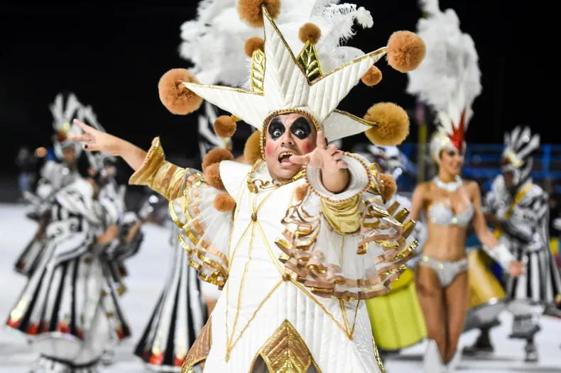 Mari – Mari, la comparsa que llegó desde Gualeguaychú brindó sus imponentes bailes y vestuarios, que trasladó imaginariamente al litoral del país.