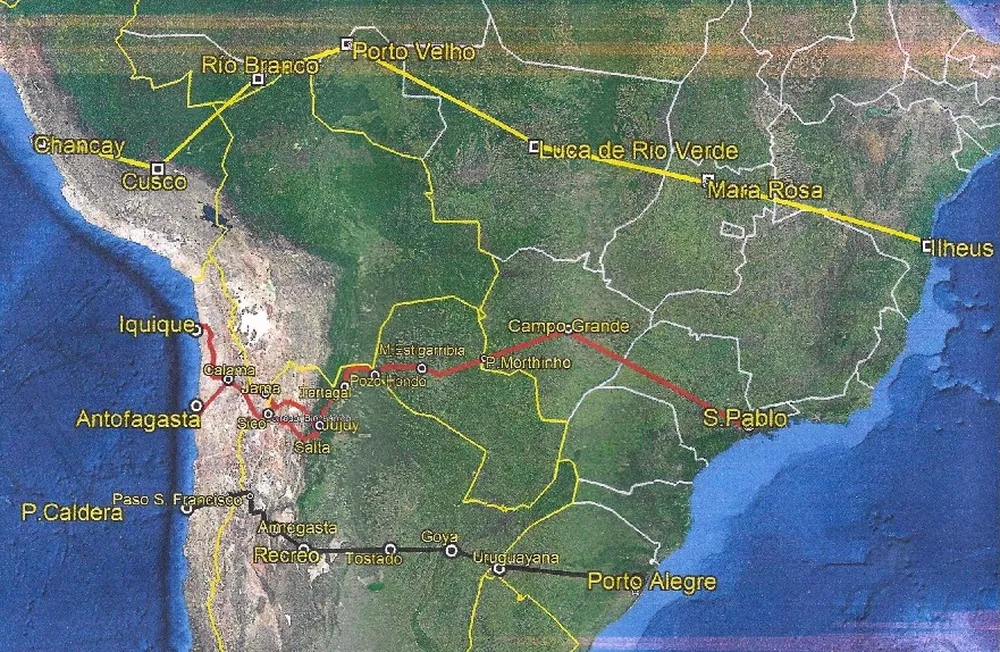 A) La nueva ruta de Brasil hacia el Pacífico (Rojo en el mapa)