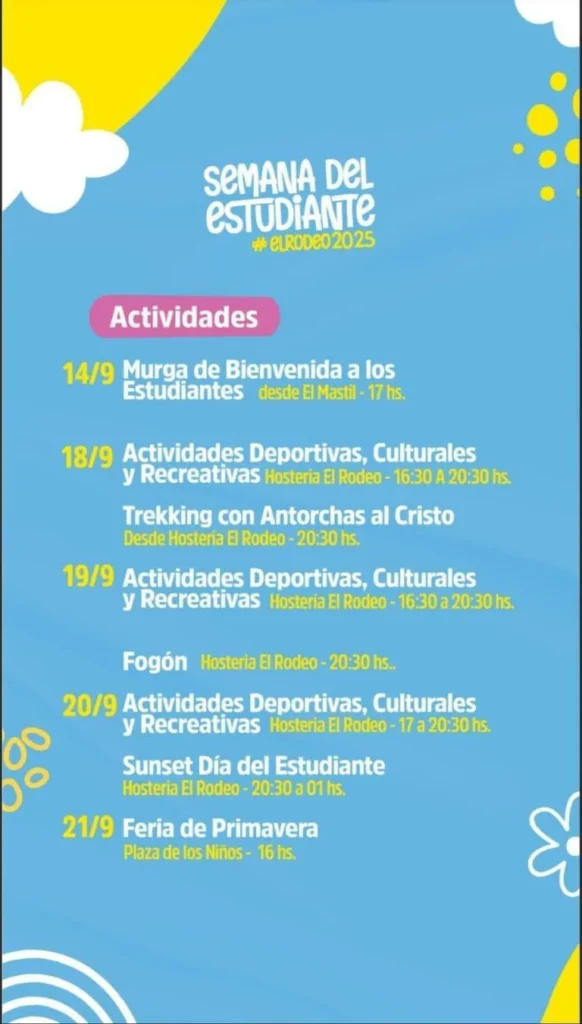 El Rodeo se prepara para vivir una edición especial de la Semana del Estudiante 2025, que se desarrollará del 18 al 21 de septiembre con una variada agenda de actividades destinadas a los jóvenes.