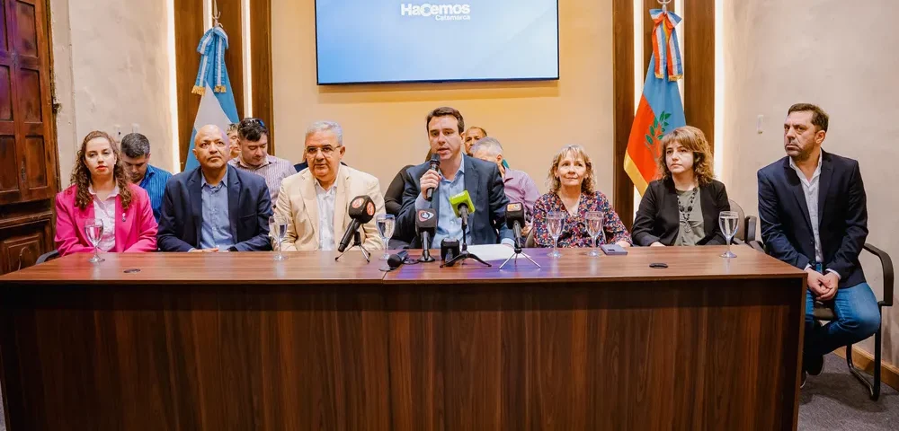El gobernador Raúl Jalil, acompañado de los ministros de Gobierno, Seguridad y Justicia, Fernando Monguillot; de Trabajo, Planificación y Recursos Humanos, Verónica Soria, y de Integración Regional, Logística y Transporte, Eduardo Andrada, confirmó el otorgamiento de una bonificación especial de $120.000 destinada a todos los trabajadores de la Administración Pública Provincial, incluyendo al personal de salud, seguridad y educación de gestión pública y privada de toda la provincia. El beneficio será abonado en 3 cuotas de $40.000 junto a los sueldos de septiembre, octubre y noviembre.