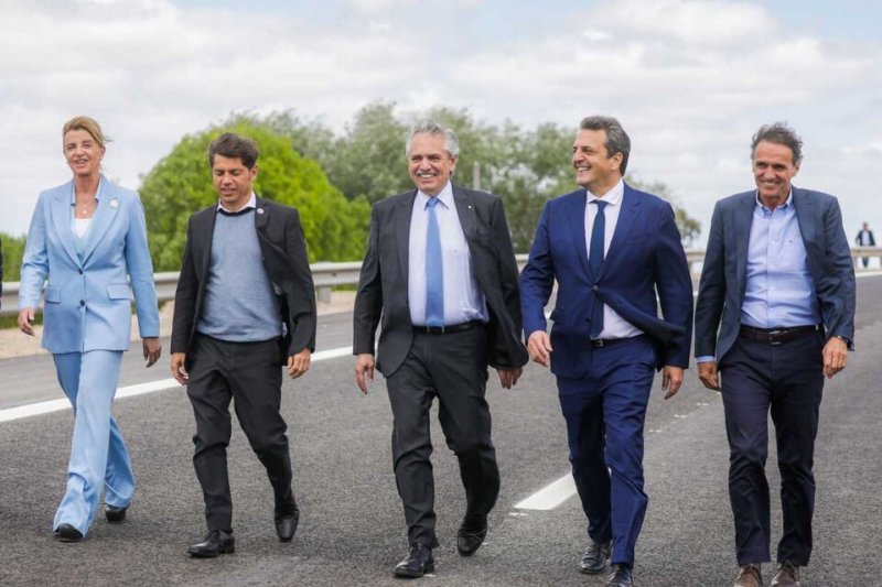 En el escenario montado en Cañuelas también estuvieron los ministros Sergio Massa (Economía) y Gabriel Katopodis (Obras Públicas), a los que se sumaron el titular de Vialidad Nacional, Gustavo Arrieta y la intendenta local, Marisa Fassi.
