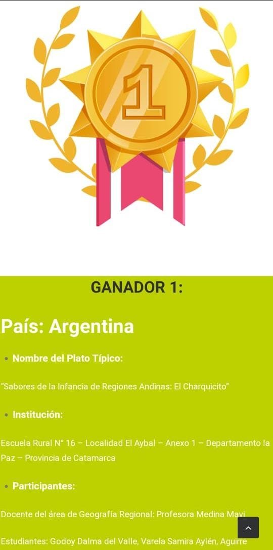 El Ministerio de Educación que conduce Andrea Centurión a través de la Coordinación de Actividades Científicas y Tecnológicas Juveniles (ACTJ) a cargo de León Camji informa con gran alegría y orgullo que el trabajo «Sabores de la Infancia de Regiones Andinas: El Charquicito» realizado por alumnos y docentes de la Escuela Rural N° 16, Anexo 1, El Aybal, departamento la Paz que representó a nuestro país en el «XVIII Encuentro Juvenil Latinoamericano de Ciencia, Tecnología, Innovación y Emprendimientos».