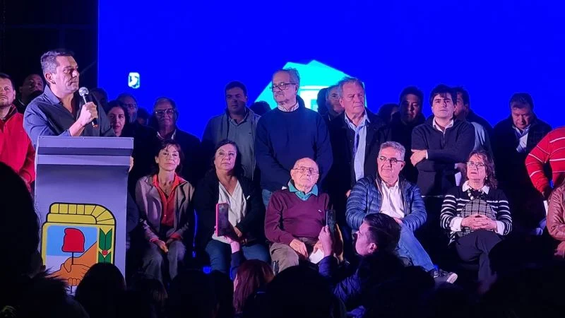 En el Centro de Empleados de Comercio en Fray Mamerto Esquiú se lleva a cabo la asunción de autoridades del Partido Justicialista.