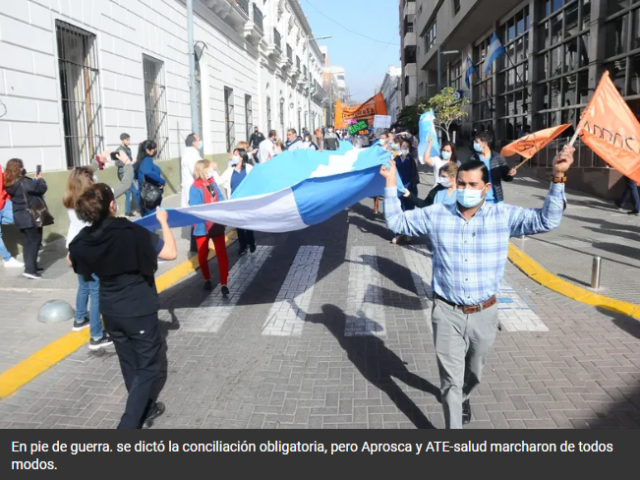 Quienes se movilizaron fue ATE Salud, que ya quedó liberado de la conciliación obligatorio al no llegar a un acuerdo con el Gobierno, y APROSCA, que ya viene con la protesta desde hace varias semanas. Como ocurrió en otras oportunidades, la medida también se repitió en varios puntos del interior provincial.