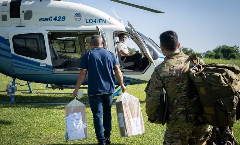 Desde las 7.15, tres urnas viajaron en helicóptero en un operativo especial para llegar a tres escuelas consideradas de alta montaña.