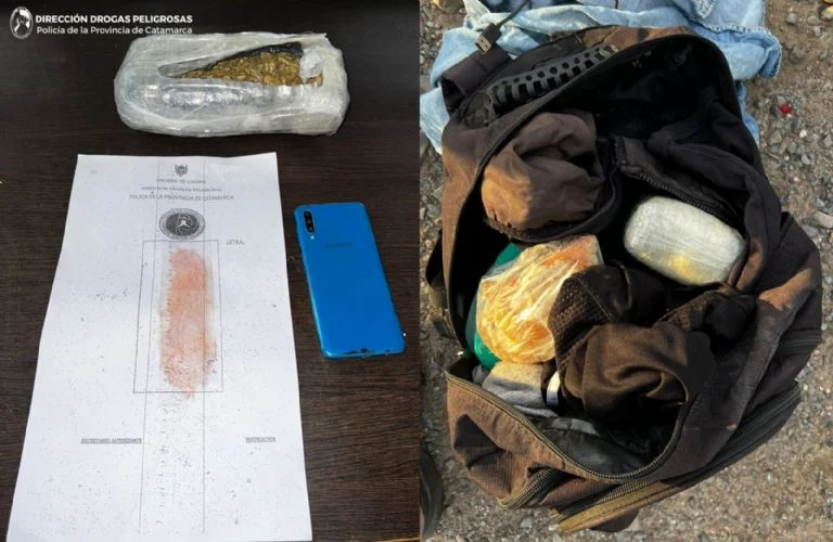Como resultado, los policías hallaron en una mochila —que pertenecería a un joven oriundo de la provincia de Santa Cruz— un paquete envuelto con cinta de embalar transparente. Tras la prueba de campo correspondiente, se determinó que se trataba de 640 gramos de marihuana, que quedaron en calidad de secuestro junto con un teléfono celular.