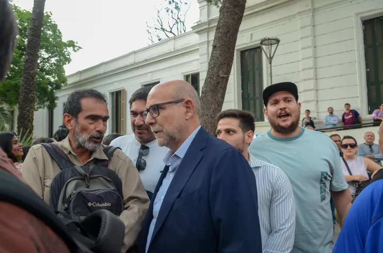 El exrector de la Universidad Nacional de Catamarca, Flavio Fama, que estaba cerca del ingreso a la Casa de Altos Estudios, pasó un momento de tensión cuando un grupo de personas que participaban comenzó a insultarlo y a pedirle que se retire al grito de «traidor».