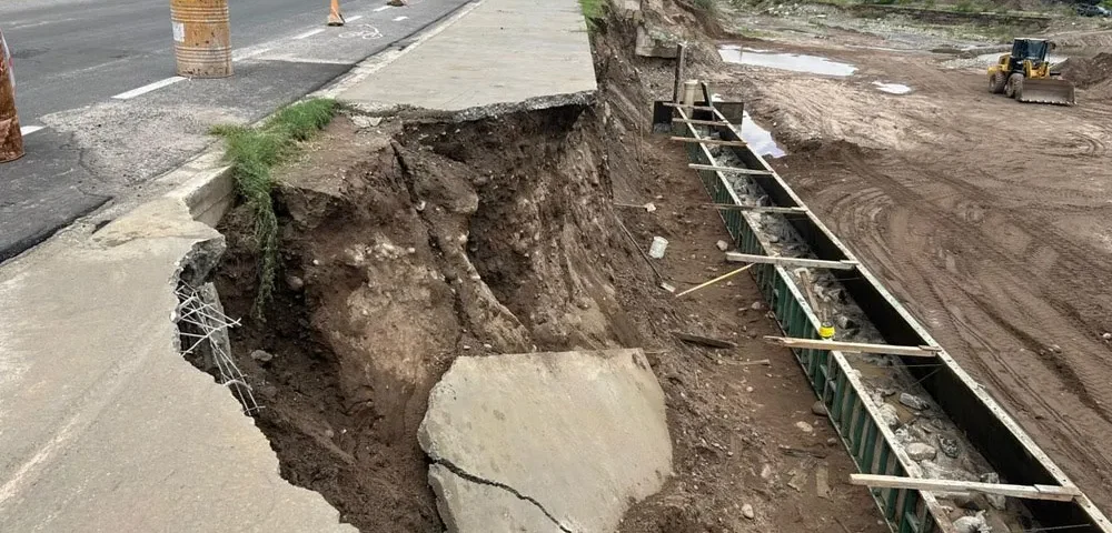El sector comprometido, forma parte de una de las etapas más recientes de la Costanera Este, y el derrumbe se produjo luego de las crecidas registradas en el río del Valle durante el último temporal.