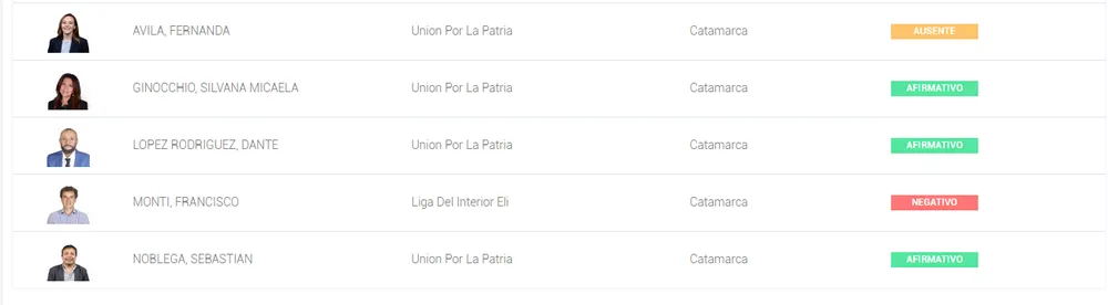 Por el bloque de Unión por la Patria, Silvana Ginocchio, Dante López Rodríguez y Sebastián Nóblega votaron a favor de insistir con las leyes. En tanto, Fernanda Ávila estuvo ausente al momento de la votación. Por su parte, el diputado Francisco Monti, de la Liga del Interior, se pronunció en contra, ratificando su alineamiento con el oficialismo. Cabe recordar que en una sesión anterior también había votado en contra de la ley de emergencia en discapacidad.