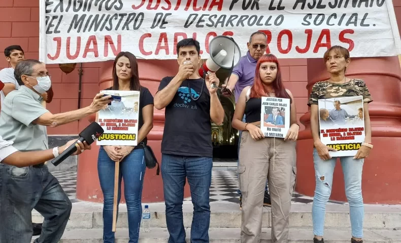 “Muchas gracias por acompañarnos en el pedido de justicia. Vamos a hacer un minuto de silencio por mi papá”, dijo Fernando Rojas, acompañado por sus hermanas Natalia y Mónica, en las escalinatas de la Catedral Nuestra Señora del Valle. Juan Carlos Rojas era su padre, más conocido como “Rojitas”. En vida se desempeñó como secretario General de la Unión de Trabajadores Hoteleros y Gastronómicos de la República Argentina (UTHGRA), presidente del partido político Tercera Posición y ministro de Desarrollo Social, cargo en el que estaba en pleno ejercicio al momento de su violenta muerte.