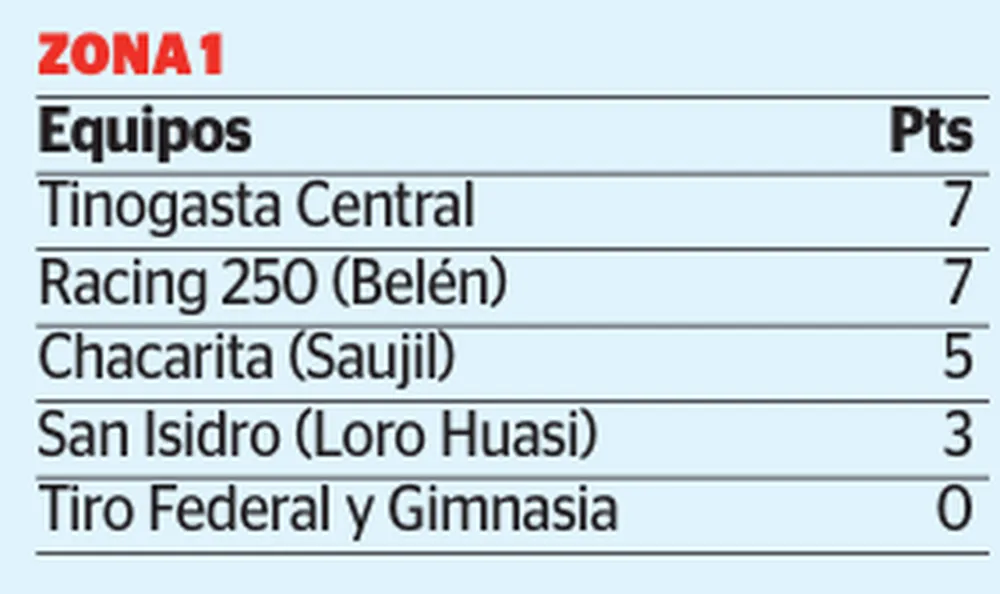 Minutos después, a las 17.20, La Soledad, de Medanitos, hará de local ante Deportivo Amaicha. Desde las 17.30, en el estadio Pedro Antonio Rosales, Sportivo Saujil recibirá a San Martín de El Bañado. El domingo, Tiro Federal y Gimnasia y Tinogasta Central se cruzarán en el estadio Alcides Mopty de Andalgalá a las 17.30.