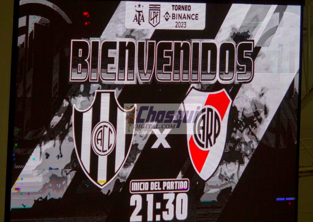 En un duelo que comenzó parejo y casi sin llegadas, poco a poco el elenco de Núñez se fue aproximando cada vez más al arco defendido por Marcos Ledesma, sobre todo en los pies de Nacho Fernández, que estrelló dos remates en los postes. Sin embargo, a los 45 minutos de la primera mitad, el diez metió un gran pase en profundidad para Milton Casco y fue a buscar al área. Pablo Solari se la sirvió y el volante la colocó con categoría contra el palo.