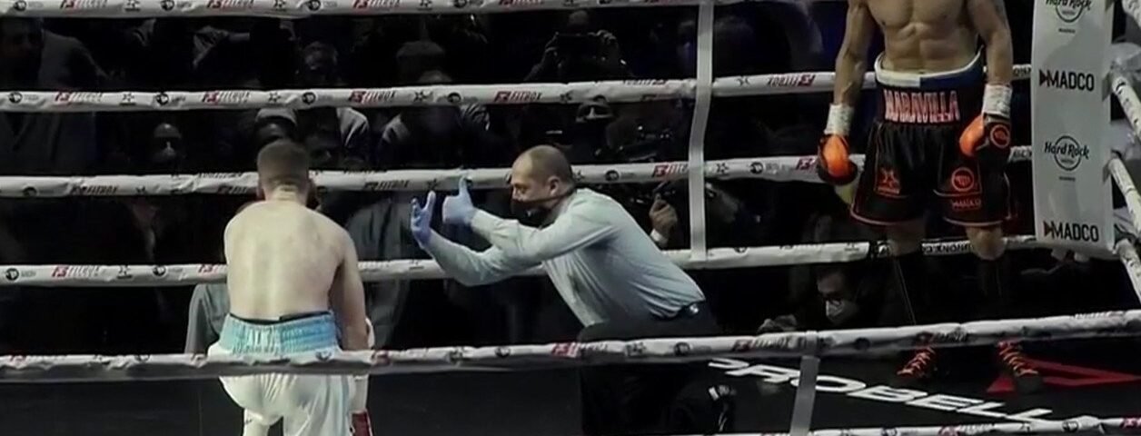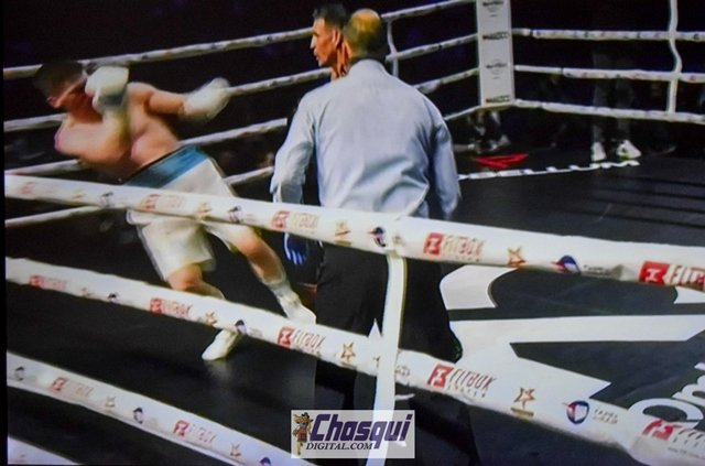 Y el vuelto llegó en forma de un gancho de derecha de Martínez a la boca del estómago de McGowan, al que obligó a arrodillarse mientras el árbitro empezaba la cuenta. Ese golpe fue fruto del trabajo de pelea que estaba llevando el bonaerense, quien no buscaba show sino edificar una victoria que, hasta ese 7° round, conseguía al menos por cuatro puntos.