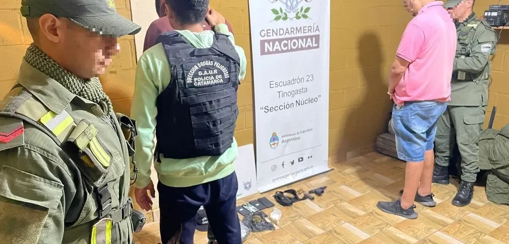 En la jornada de hoy, efectivos del Grupo Antinarcóticos de Unidades Regionales (GAUR Tinogasta), perteneciente a la Dirección Drogas Peligrosas de la Policía de la Provincia, tomaron conocimiento que un Sargento de Policía, quien presta servicio en esa Ciudad del departamento homónimo, estaría transportando sustancias estupefacientes en un vehículo particular, por lo que de inmediato dieron aviso al personal del Escuadrón N° 23 de la Agrupación VIII Catamarca de Gendarmeria Nacional Argentina, que realizaba control vehicular en el empalme de las Rutas Nacionales N° 60 y 40, a la altura de Cerro Negro.