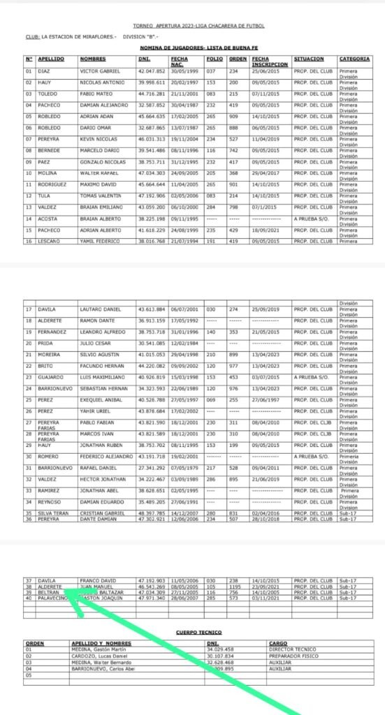 También, La Estación aclaró al Consejo Directivo, que el Jugador cuestionado, SI es propiedad del club, indicando datos personales, registro de inscripción con folio, orden y fecha exacta de Inscripción en la liga. Además, el jugador se encuentra en la lista de buena fe del club, casillero N°38.