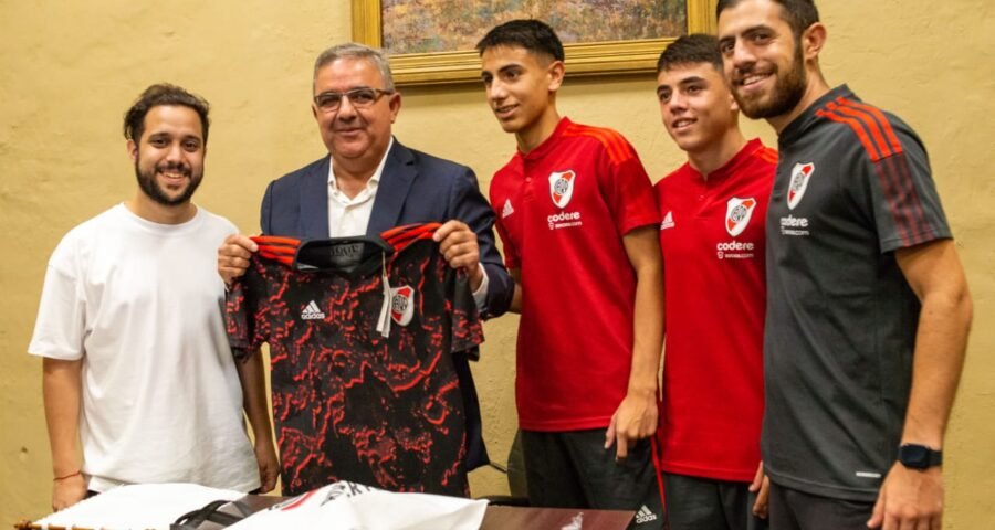 Dirigentes y referentes del plantel de las divisiones formativas de River Plate que se encuentra de pretemporada en Catamarca, visitaron al gobernador Raúl Jalil en Casa de Gobierno.