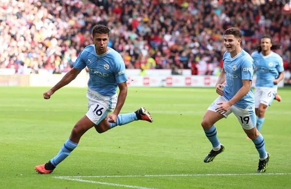 Con goles de Erling Haaland y Rodri, el equipo del entrenador Josep Guardiola, que no estuvo presenta tras someterse a una operación en la espalda, se impuso ante el Sheffield, donde lo había empatado de forma transitoria Jayden Bogle, y se convirtió en el único líder del certamen inglés con nueve unidades.