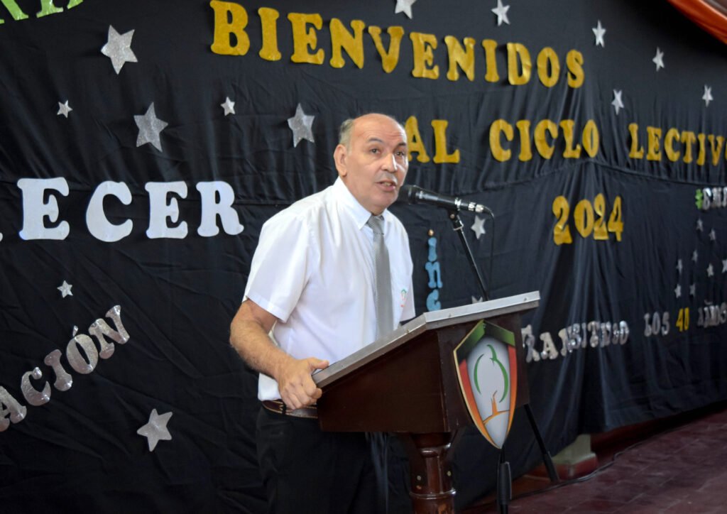 Llegó el uso de las palabras, el Apoderado Legal Prof. Reartes, quien en sus consideraciones dio la bienvenida a los alumnos de primer año y los exhortó a ser buenas compañero, tener siempre empatía, rescatando los valores y estudiar sobre todo las cosas.