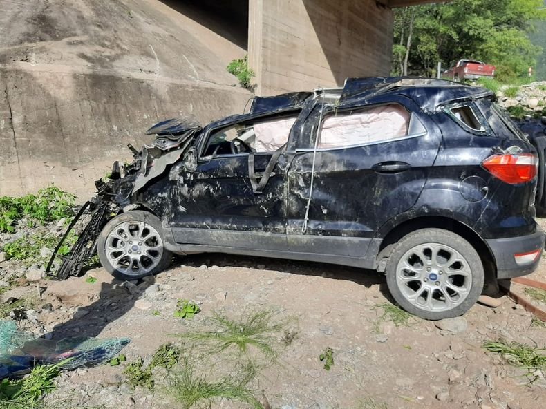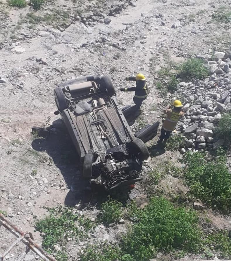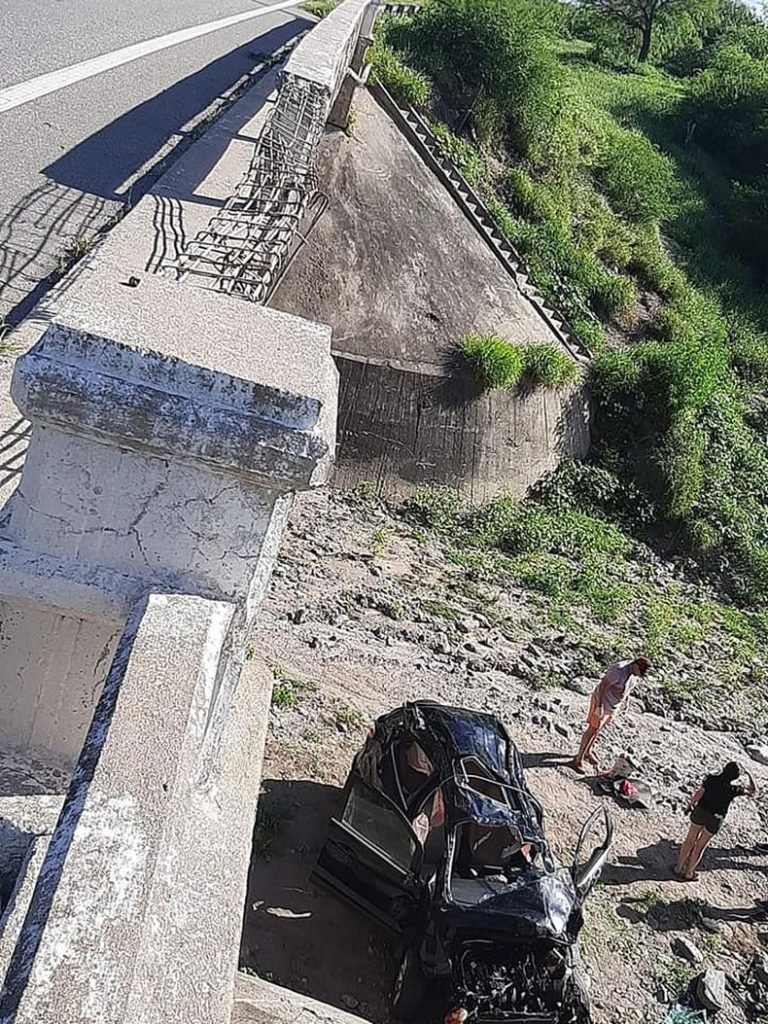 Un espectacular siniestro vial tuvo lugar hoy en la ruta nacional 38, en inmediaciones de la localidad El Portezuelo, dónde una camioneta Ford Eco Sport rompió la contención de un puente y cayó varios metros al vacío.
