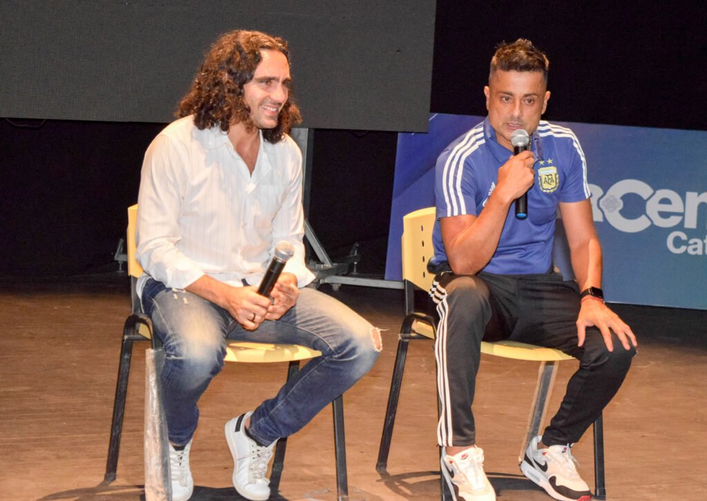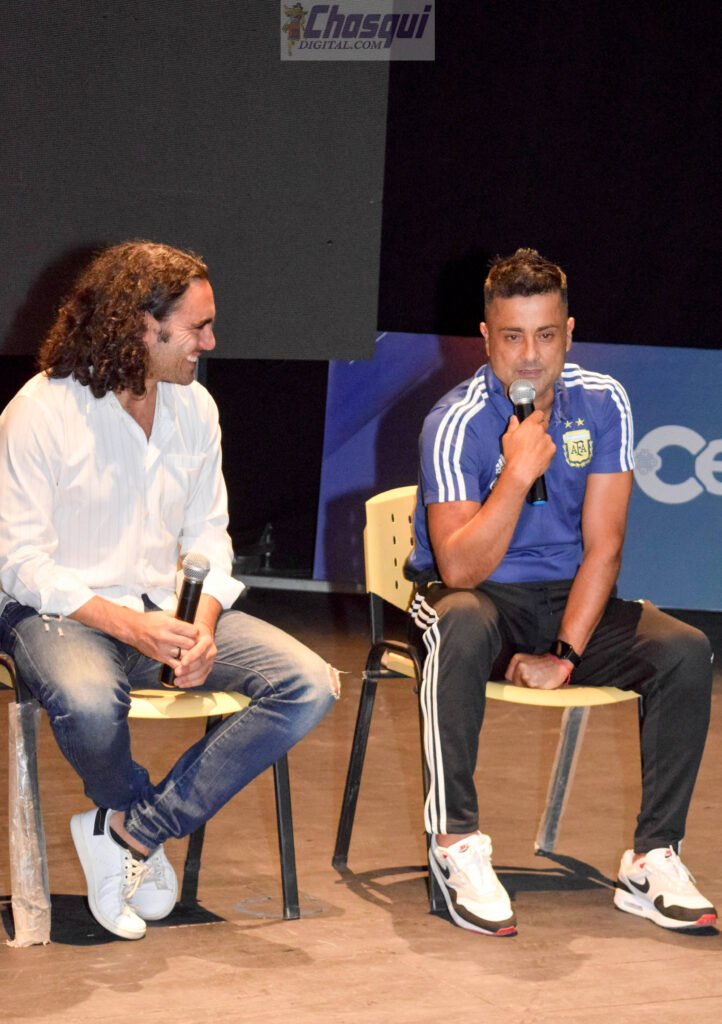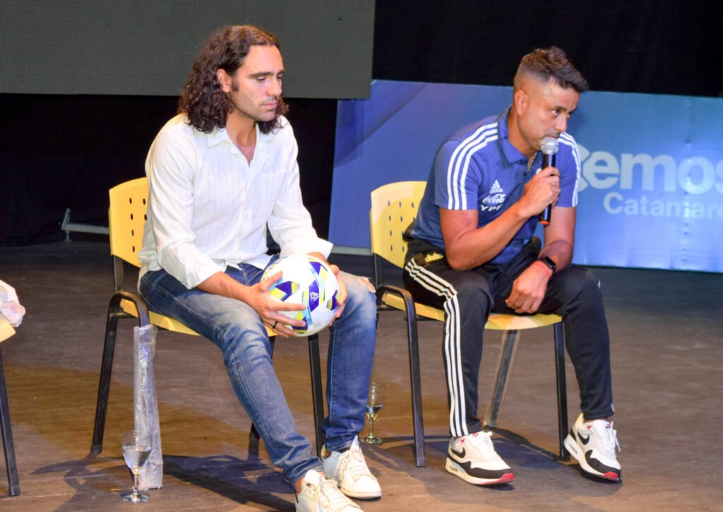 Durante la charla, Sorín estuvo acompañado por el catamarqueño Julio César Bayón, integrante de la selección campeona en Qatar, quien recordó emocionado haber sido parte del aquel plantel que quedará en el recuerdo de todos los argentinos.