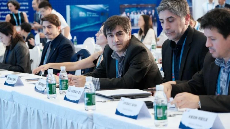 El ministro de Minería, Marcelo Murúa, con el presidente de Camyen, Hugo Moya, y Susana Peralta, como representante del Centro de Desarrollo Científico, Tecnológico y Productivo, entre otros, se reunieron con Ma Qiang, subgerente general de la División de Nuevos Materiales Energéticos de Eversun Holding Group, y con Nan Chang del Departamento de Inversiones y Fusiones & Adquisiciones de Chinalco.