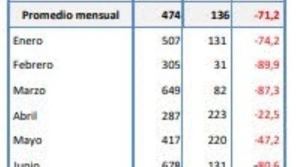 El consumo per cápita arrojó un valor de 1,37 litros por habitante (población total país), lo cual indica una caída del 10% respecto a igual período del año anterior.