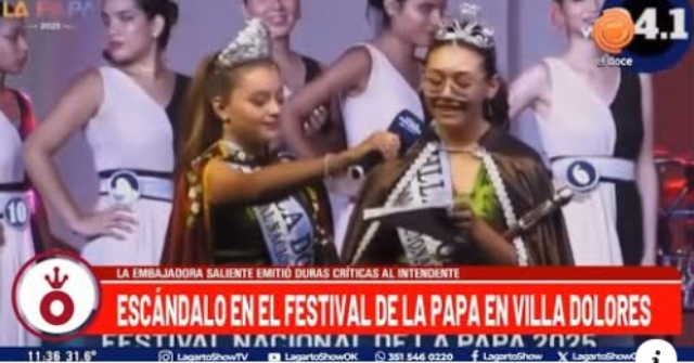 Inesperado momento de tensión se vivió este fin de semana en el Festival de la Papa de Villa Dolores, cuando una de sus embajadoras se despachó con un discurso muy crítico al momento de entregar sus atributos.