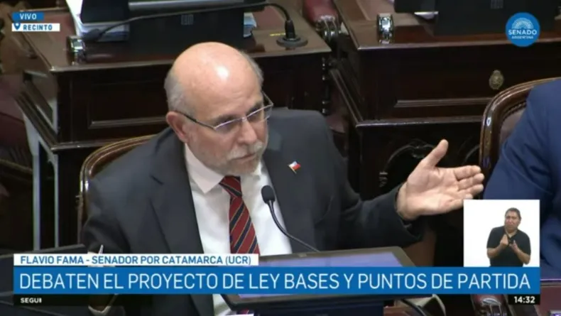 El senador nacional por Catamarca Flavio Fama expresó que la Ley Bases que trata el Senado “no es una ley desguazada, es la ley que quiere el Gobierno” y destacó los aportes realizados desde el bloque de la UCR.