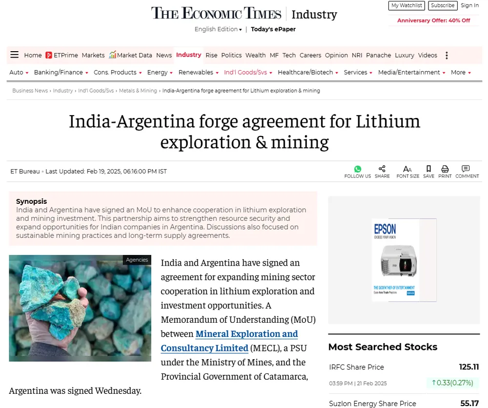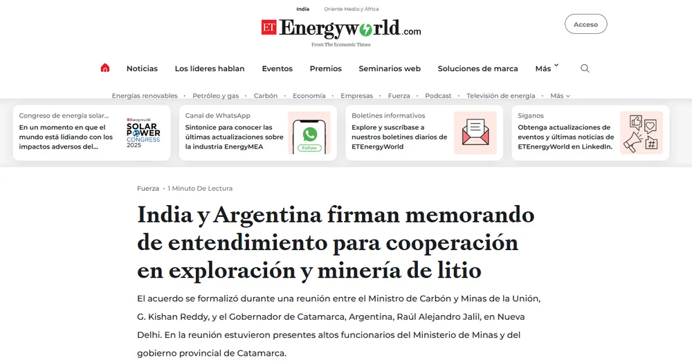 Este acuerdo ha generado gran interés en medios internacionales como The Economic Times yEnergy World, que destacan la importancia de esta cooperación para el futuro de la minería y la tecnología en la región.