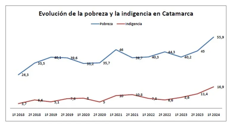 En Catamarca, el nivel de pobreza alcanzó el 55,9%. En tanto que el de indigencia fue del 16,9%.