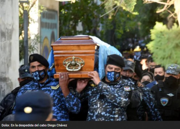 Con una importante concurrencia de familiares, efectivos policiales y de las autoridades de Seguridad se llevó a cabo el sepelio de Carlos Diego Chávez (38), el policía que fue asesinado ayer en el barrio Valle Chico, de esta ciudad Capital. Sus restos fueron velados en el predio de la Escuela de Suboficiales de la localidad de Villa Dolores, en Valle Viejo durante la mañana y siesta de hoy y alrededor de las 16.30 un importante cortejo acompañó sus restos hasta el panteón que posee la policía en el cementerio municipal Fray Mamerto Esquiú.