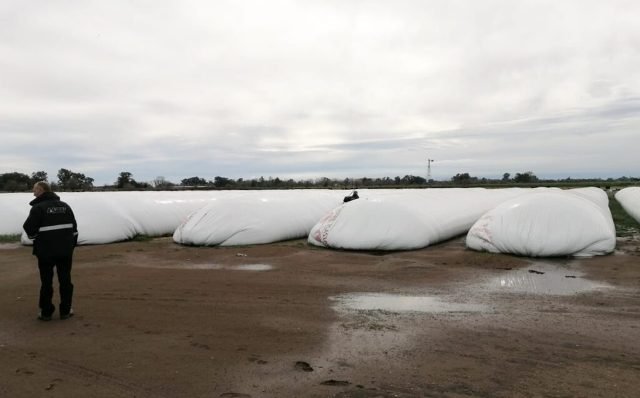 En el operativo se detectaron 5.486 toneladas de maíz partido, 1.216 toneladas de soja y 174 toneladas de trigo. Todo guardado en silobolsas y sin respaldo documental, según se informó oficialmente. Para graficar la dimensión de lo hallado, se indicó que esa cantidad equivale a 230 camiones de carga ubicados uno detrás del otro a lo largo de 5 kilómetros de ruta.