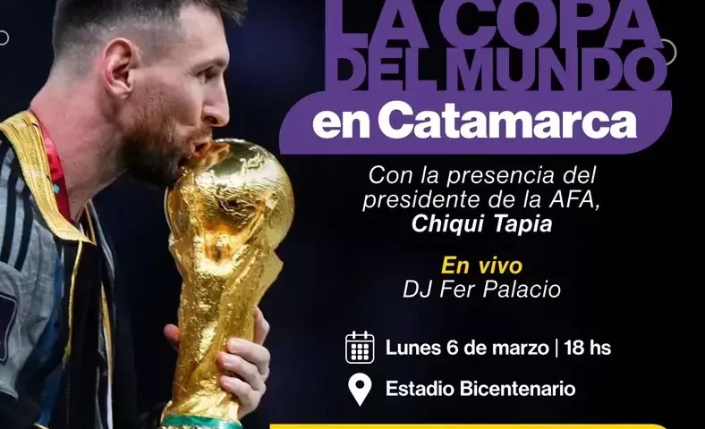 El evento central organizado por el ministerio de Cultura, Turismo y Deporte contará con la presencia de la Copa de la mano del presidente de AFA, Chiqui Tapia, y finalizará con el DJ Fer Palacio, iniciando a las 18 horas. Las puertas para el ingreso al Estadio se abrirán a las 15.30 hs.