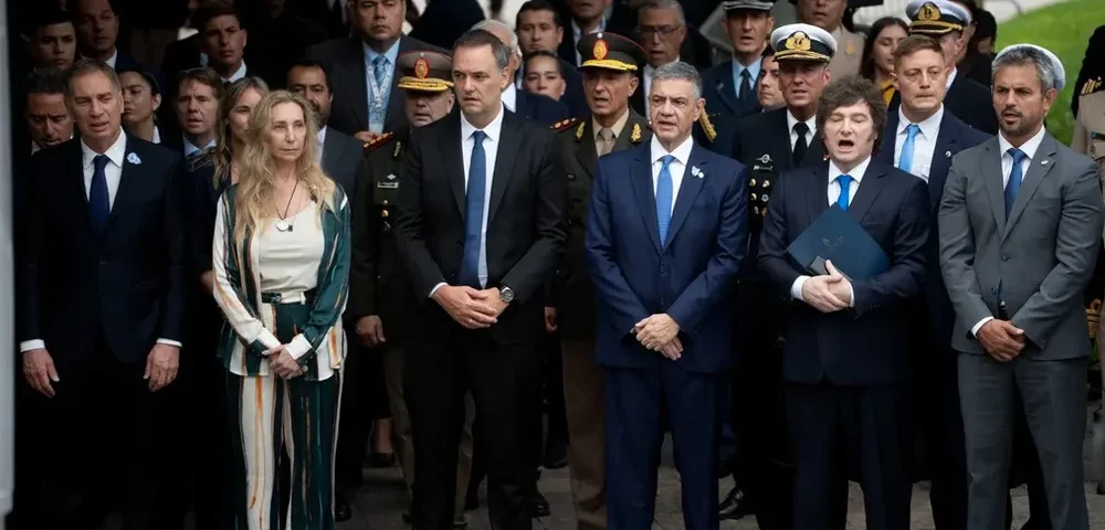 En el acto que se llevó a cabo en la Plaza San Martín del barrio porteño de Retiro, también estuvieron presentes los ministros Manuel Adorni (Gabinete), Luis Caputo (Economía), Pablo Quirno (Exterior y Culto), Diego Santilli (Interior), Alejandra Monteoliva (Seguridad) Federico Sturzenegger (Desregulación), Mario Lugones (Salud) y Juan Bautista Mahiques (Justicia).