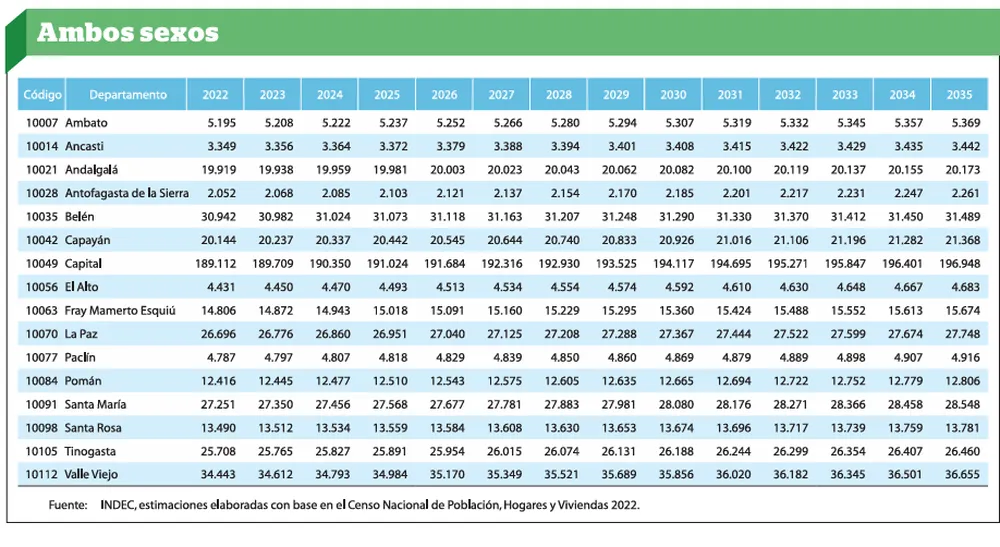 Las proyecciones oficiales del INDEC, elaboradas a partir del Censo Nacional de Población, Hogares y Viviendas 2022, anticipan que Catamarca experimentará un crecimiento demográfico sostenido en la próxima década.