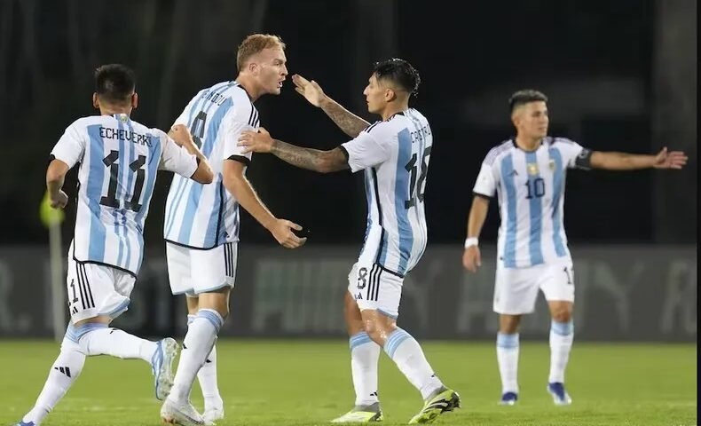 La Selección argentina Sub 23 igualó anoche 1-1 ante su par de Paraguay en el Polideportivo Misael Delgado por la primera fecha del Grupo B en el Preolímpico de Venezuela, que entrega dos plazas a los Juegos Olímpicos de París 2024. El empate final llegó con el agónico tanto de Luciano Gondou tras una buena jugada en la que participó Claudio Echeverri. El combinado guaraní abrió el marcador con el gol de penal de Diego Gómez.
