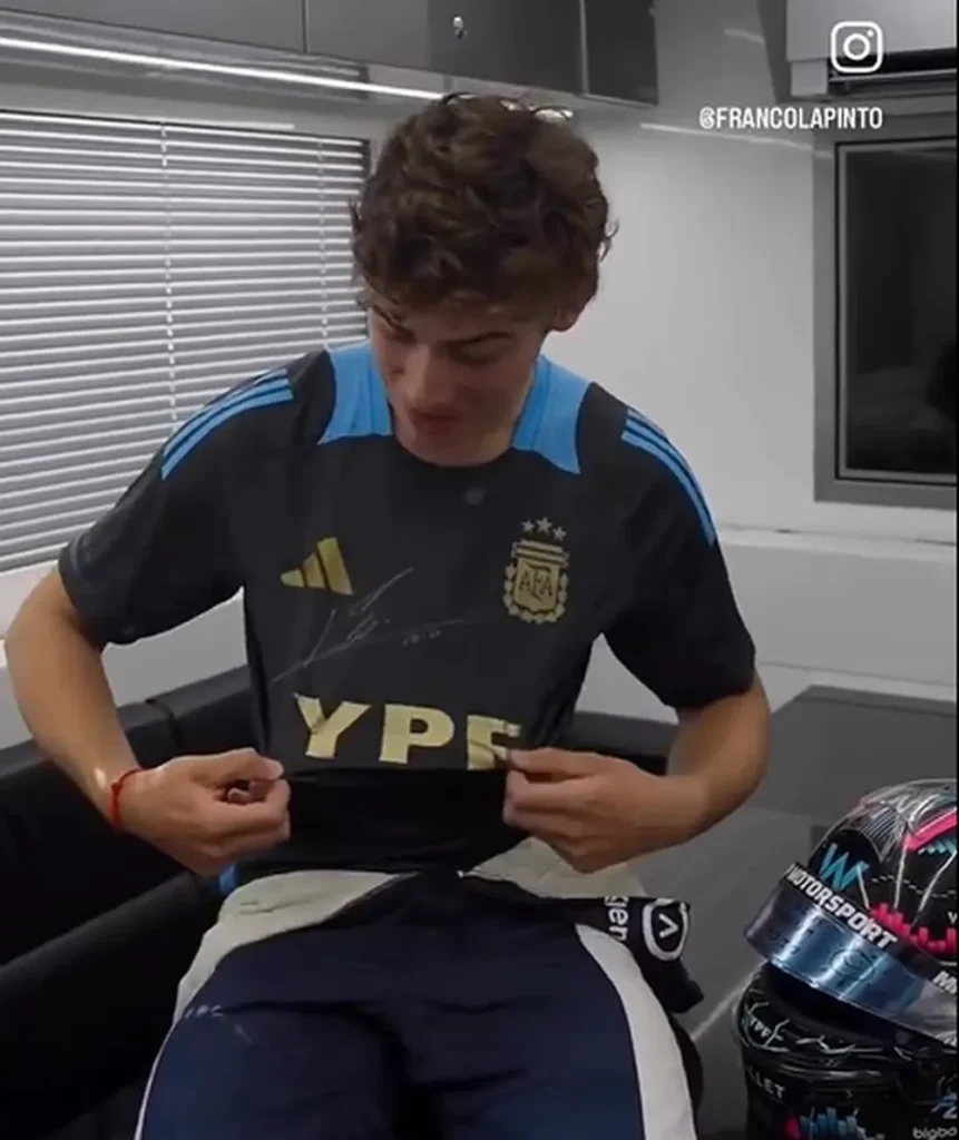 A su vez, Messi le había regalado a Colapinto una camiseta de la selección argentina firmada, como un gesto de apoyo y motivación antes de su victoria en la Fórmula 2. Colapinto expresó su agradecimiento y emoción por este regalo, considerándolo un amuleto de buena suerte. La camiseta fue un regalo muy especial para Colapinto, quien ganó su primera carrera de Fórmula 2 poco después.