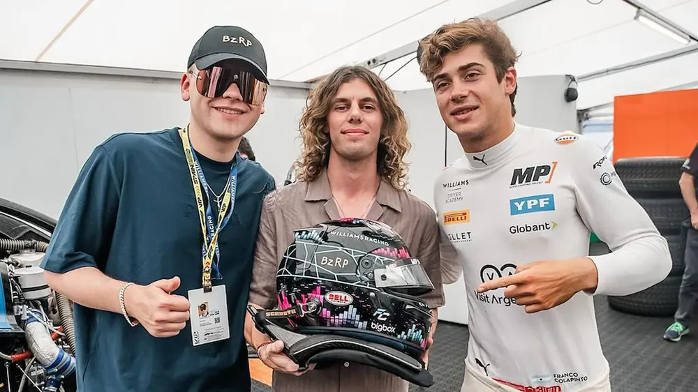 Bizarrap, el diseñador del emblemático casco Lucas Bricco y Franco Colapinto.
