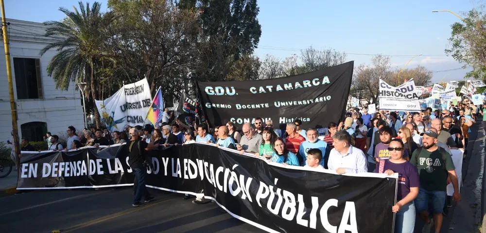 La concentración inició a las 17 h, en la Plaza del Maestro, como una acción simbólica por el Día del Profesor, y luego continuó con un abrazo simbólico a la Universidad Nacional de Catamarca (UNCa), mediante el recorrido entre las calles Ayacucho y Maipú norte. Finalmente, la movilización concluyó en la explanada de entrada a la Universidad, en Junín y Belgrano, donde ahora se realiza el pronunciamiento de un discurso elaborado por el Consejo Interuniversitario Nacional (CIN) y, posteriormente, se realizará un cierre cultural.
