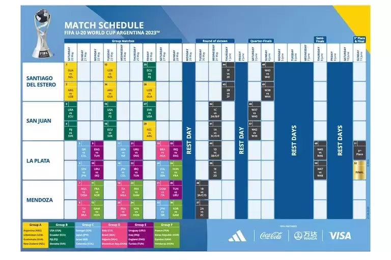 El Mundial Sub 20 ya está listo para iniciar la acción después de todos los planes de emergencia que se debieron llevar a cabo luego del traslado de la sede a Argentina. FIFA difundió el cronograma de los 52 partidos que componen este torneo que divide a 24 países en seis grupos. El sábado 20 de mayo se llevará a cabo el partido inaugural y el domingo 11 de junio será el punto marcado en el calendario para el partido que definirá el título en esta 23ª edición del certamen juvenil.