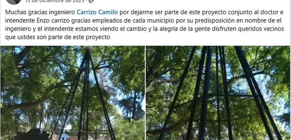 Allí puede verse que participó del armado de estos árboles al menos en Rincón y Siján, dos localidades que dependen de la Municipalidad de Saujil: la que conduce Enzo Carrizo, justamente desde diciembre de 2023.