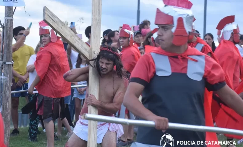En la tarde de ayer, a las 18:00, en el Parque de Los Vientos, ubicado en la Avenida Juan Pablo Segundo de esta Ciudad Capital, con motivo de las celebraciones por la Semana Santa, se llevó a cabo un Vía Crucis Viviente donde participaron efectivos policiales de distintas dependencias y jóvenes de Banda de Varela.