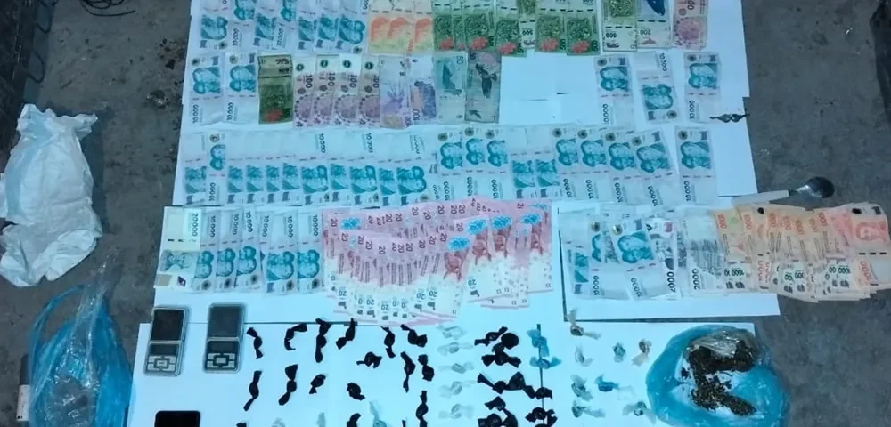 Tras irrumpir en los domicilios, los investigadores secuestraron cuarenta y ocho (48) envoltorios de plástico que contenían marihuana, tres (03) trozos compactados de la misma sustancia y envoltorios de plástico conteniendo Cocaína, como así también dos envoltorios con semillas de la variedad Cannabis Sativa, un (01) teléfono celular, dos (02) balanzas digitales y la suma de quinientos ochenta mil cuatrocientos ochenta pesos ($580.480) en efectivo.
