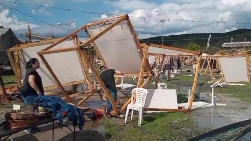 Lamentablemente, el percance climático provocó también inconvenientes en la feria del Patio, donde muchos expositores vieron sus stands afectados por las ráfagas de viento.