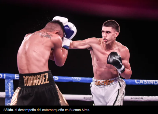 Domínguez (58,500 Kg.), con más ganas que ideas, intentó presionar y se limitó a tratar de llevar las acciones al cuerpo a cuerpo para impedir que Agüero tuviera espacio para castigarlo. Eso lo consiguió en algunos pasajes de los asaltos 2 y 3, aunque no imposibilitó que el catamarqueño marcara diferencias.