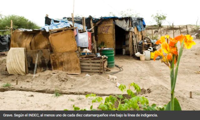 Los datos surgen del análisis de la Encuesta Permanente de Hogares respecto de la incidencia de la pobreza y la indigencia, que contempló a una población de 226.676 personas en el Gran Catamarca, de las cuales 89.960 vivían hasta diciembre pasado en condiciones de pobreza, y de ese total, unas 24.551 lo hacían bajo la línea de la indigencia.