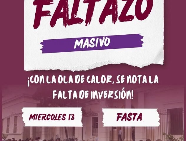«Con la ola de calor se nota la falta de inversión», señala el eslogan de la protesta que se llevará a cabo este miércoles 13. Los padres piden que se brinden mejores condiciones para el cursado de clases. Aseguran que hay faltante de aires acondicionados y ventiladores, por lo que estudiar se torna realmente complicado con las elevadas temperaturas registradas en los últimos días.