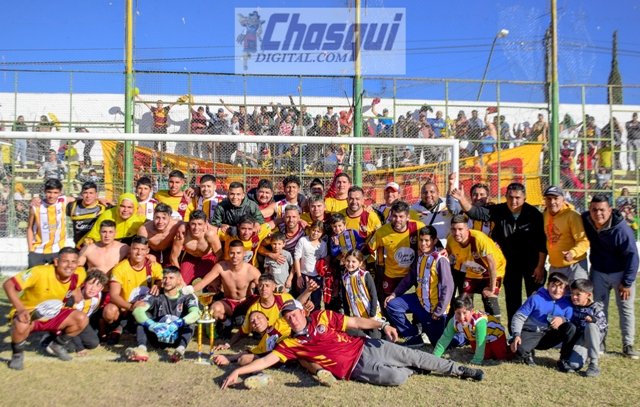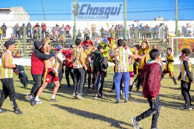Sobre el final del encuentro, jugadores e hinchas se quedaron a dentro de la cancha esperando la culminación en Chumbicha, y en un grito simultaneó festejaron el histórico ascenso.