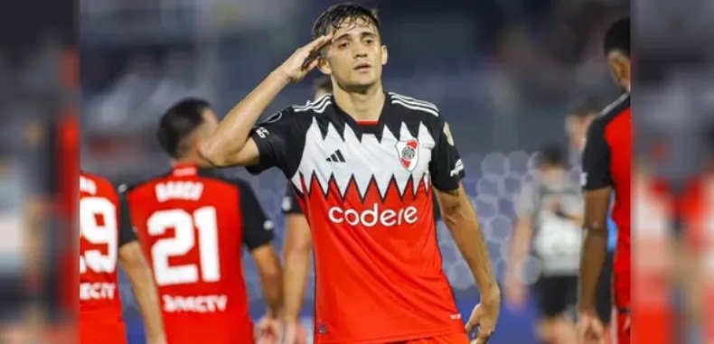 En el complemento, con un claro dominador River, Manuel Lanzini y Facundo Colidio hicieron una linda pared y Mastantuono tomó la pelota y la pisó para definir cruzado al segundo palo para el 2 a 1. Este fue el primer gol del juvenil de 16 años en competencias internacionales.